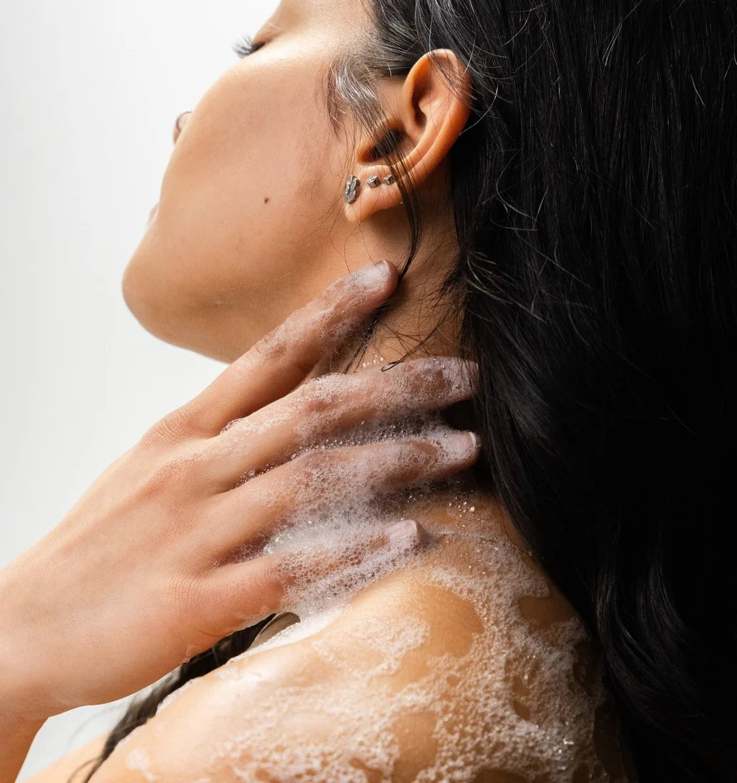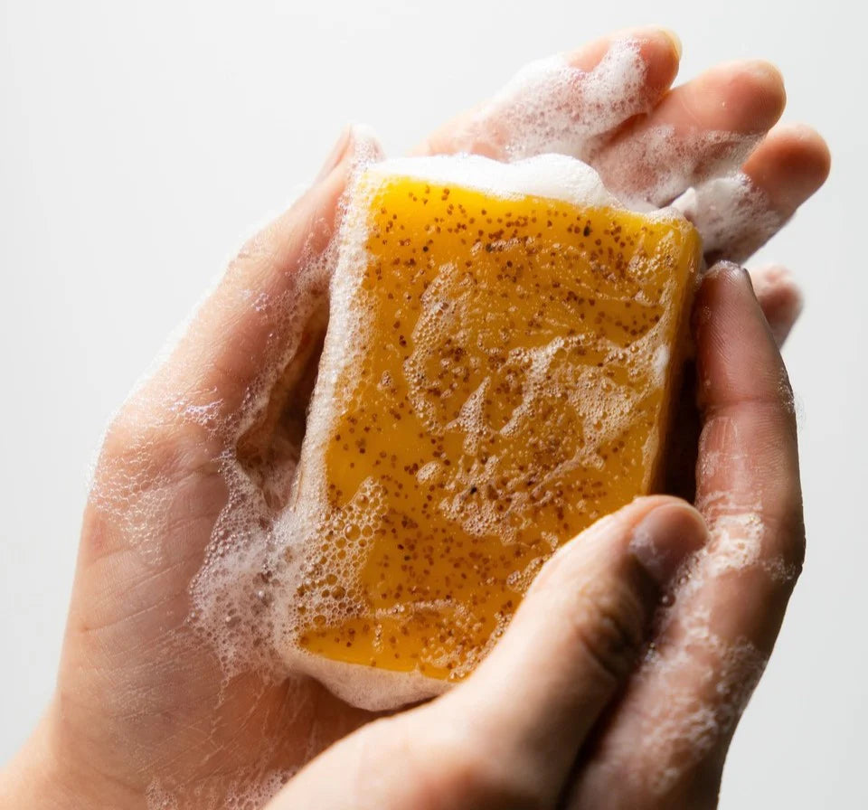 Lather the soap and gently apply it to your face or body. Leave for 1–2 minutes.